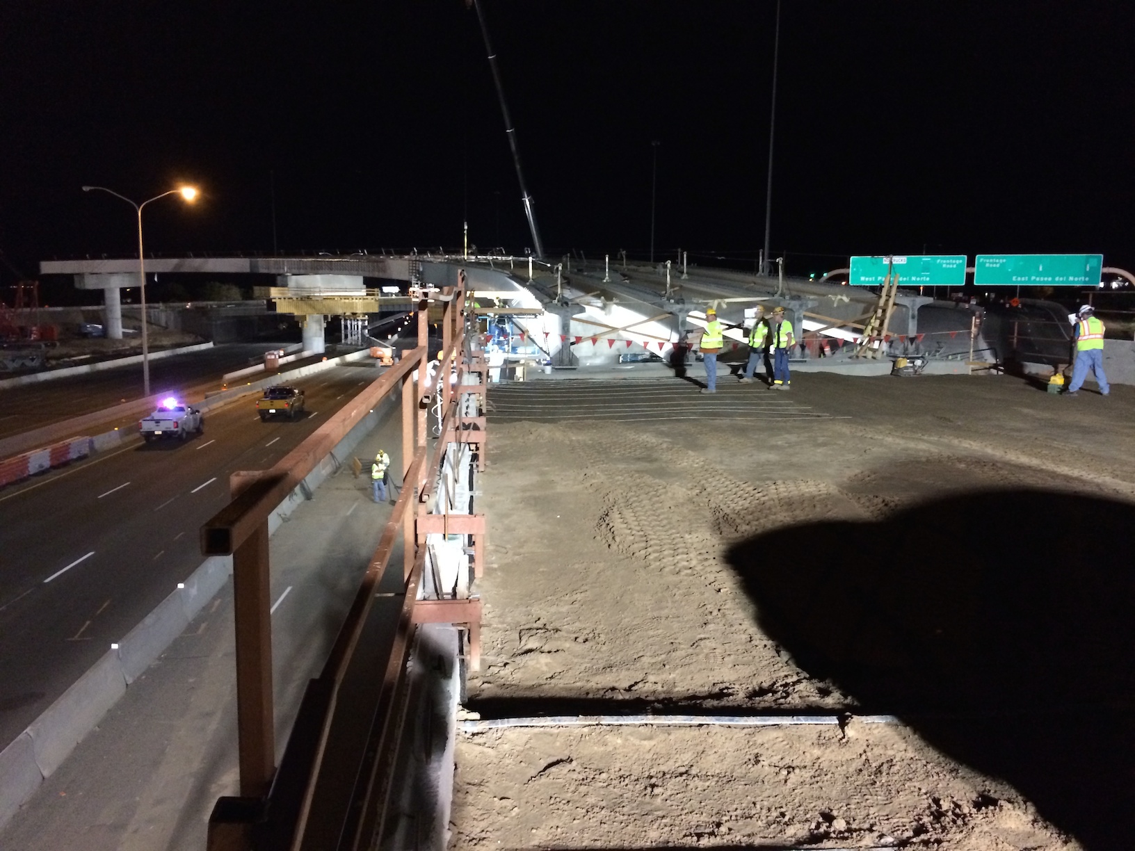 Above is my life. The big flyover abutment on the project. The guy you see on the right next to the machine on the ground is the NMDOT guy running the same tests I just ran for quality assurance. In this picture, we are testing the fill in the flyover abutment to make certain that it is compacted properly. You really don't want settlement under your highways. If you look to the left you can see we are about 30' up at this point. Two tests per wall, per 100 linear feet, per 2' fill, plus one test per 2000 cubic yards of fill in the embankment and one test per 6" fill in the abutment so I just finished 13 tests on this area. I'll be heading off to do the same on the other side of the flyover, plus each side of several bridges (And all the road sub grades and base course, pipe trenches, concrete testing, etc). Story of my life. One tester keeping track of 4-9 crews. Site pinball baby!